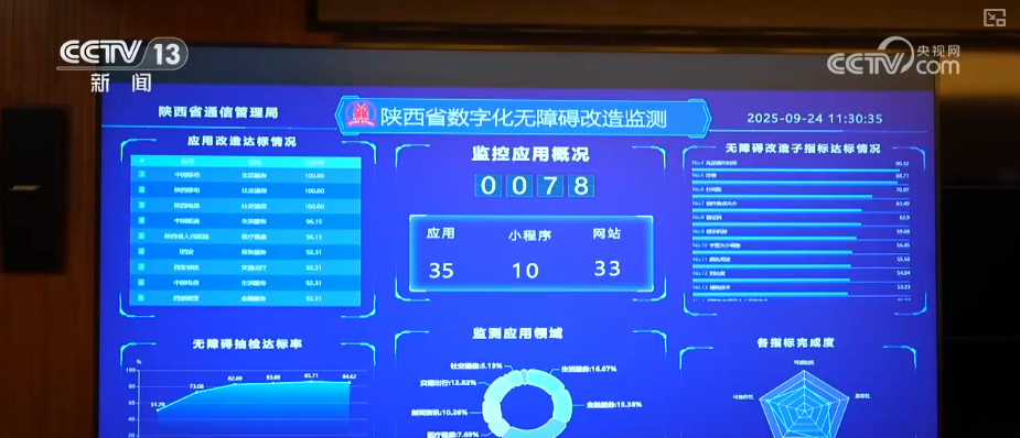 同时,陕西省通信办理局特地开辟了“陕西数字无妨碍监测平台”,沉点监测包罗交通、金融等涉及平易近生9大范畴78个沉点互联网使用,对其消息无妨碍进度进行常态化和督促整改。